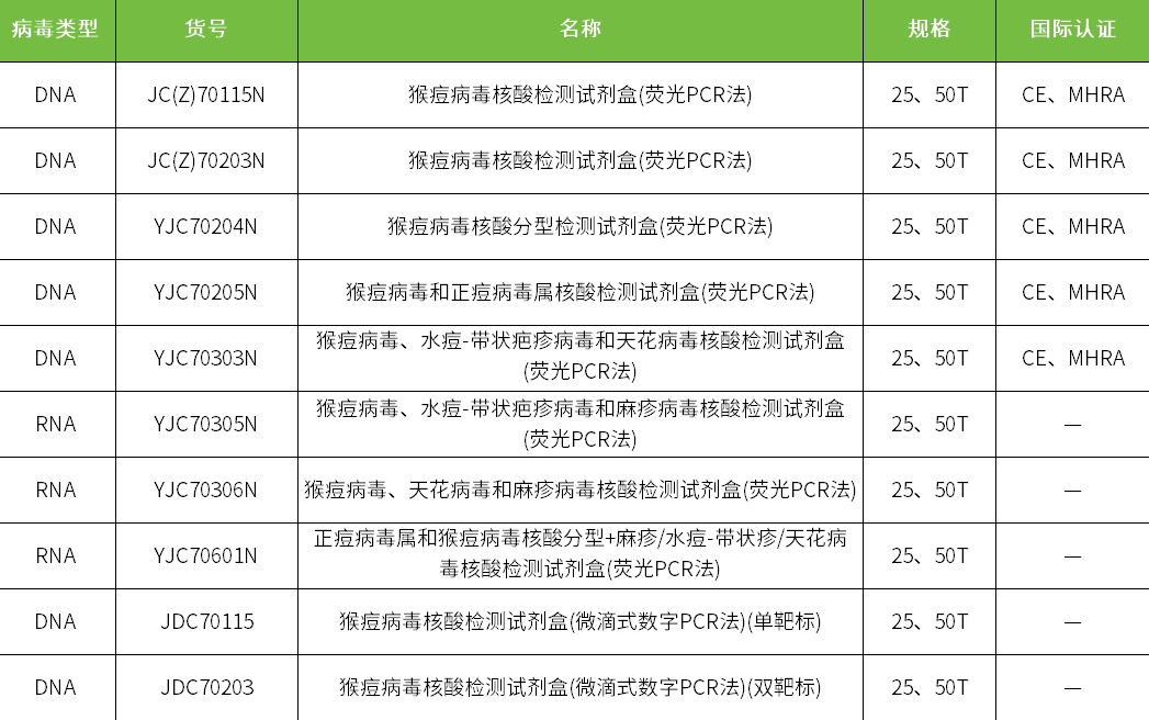 碩世生物是全球猴痘檢測(cè)產(chǎn)品主要供應(yīng)商之一,提供基于實(shí)時(shí)熒光PCR技術(shù)和微滴數(shù)字PCR法雙技術(shù)平臺(tái),F(xiàn)3L單靶標(biāo)基因/F3L+B7R雙靶標(biāo)基因/分型檢測(cè)試劑,可快速準(zhǔn)確鑒別出皮膚病變標(biāo)本(皮疹/痘皰滲出物的拭子、痘皰液、痘痂等)、咽拭子、全血或血清樣本中的猴痘病毒,目前已有多種試劑獲得歐盟CE與英國(guó)MHRA認(rèn)證。