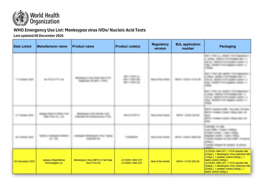 碩世生物產(chǎn)品——猴痘病毒核酸檢測(cè)試劑盒(熒光PCR法),正式被世界衛(wèi)生組織(WHO)列入應(yīng)急使用清單。