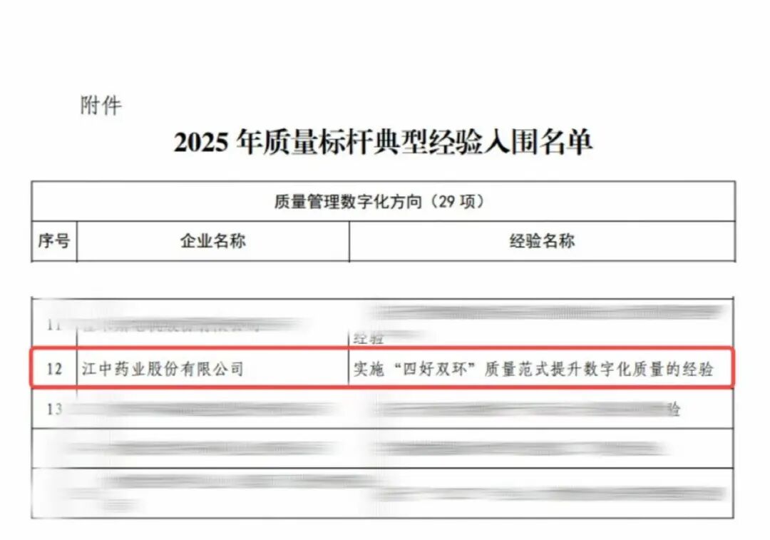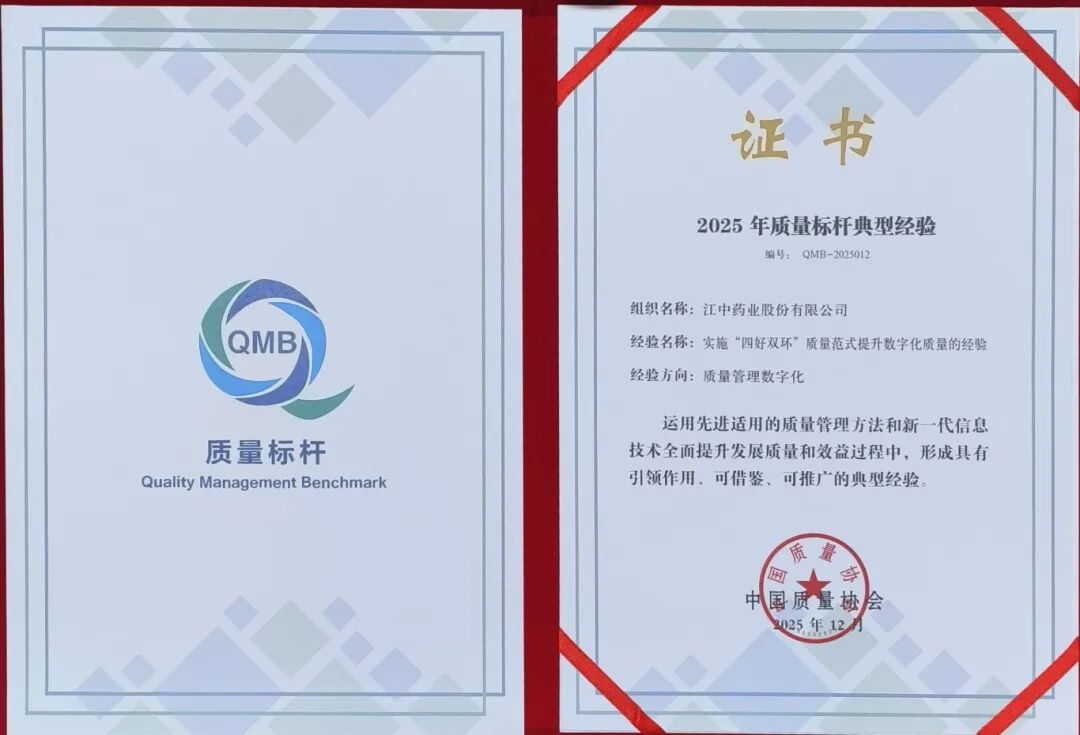 江中藥業(yè)獲評2025年全國質(zhì)量標(biāo)桿典型經(jīng)驗