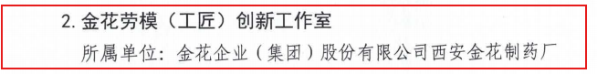 深耕醫(yī)藥創(chuàng)新 賦能高質(zhì)量發(fā)展 —— 金花股份勞模工匠創(chuàng)新工作室入選省級重點支持名單