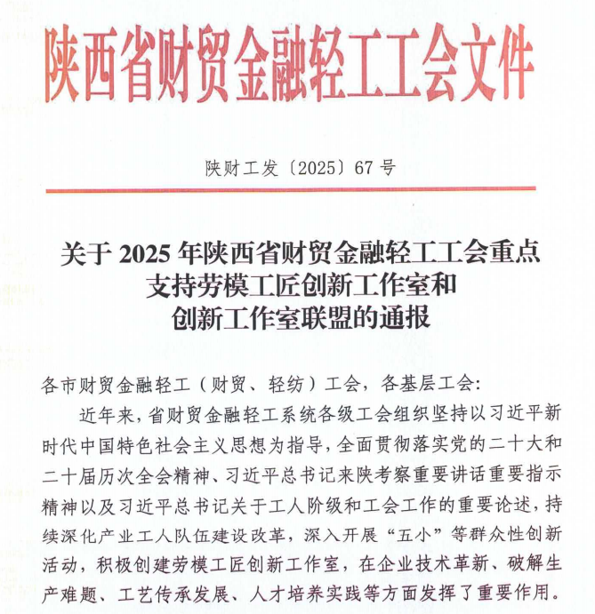 為表揚先進(jìn)典型,大力弘揚勞模精神、勞動精神、工匠精神,在全社會營造勞動光榮、技能寶貴、創(chuàng)造偉大的良好氛圍,11月26日,陜西省財貿(mào)金融輕工工會發(fā)布了一批省財貿(mào)金融輕工工會重點支持勞模工匠創(chuàng)新工作室及工作室聯(lián)盟,金花股份(600080)勞模工匠創(chuàng)新工作室憑借在技術(shù)創(chuàng)新、人才培養(yǎng)、成果轉(zhuǎn)化等方面的突出表現(xiàn)成功入選,并獲得專項資金獎勵支持。