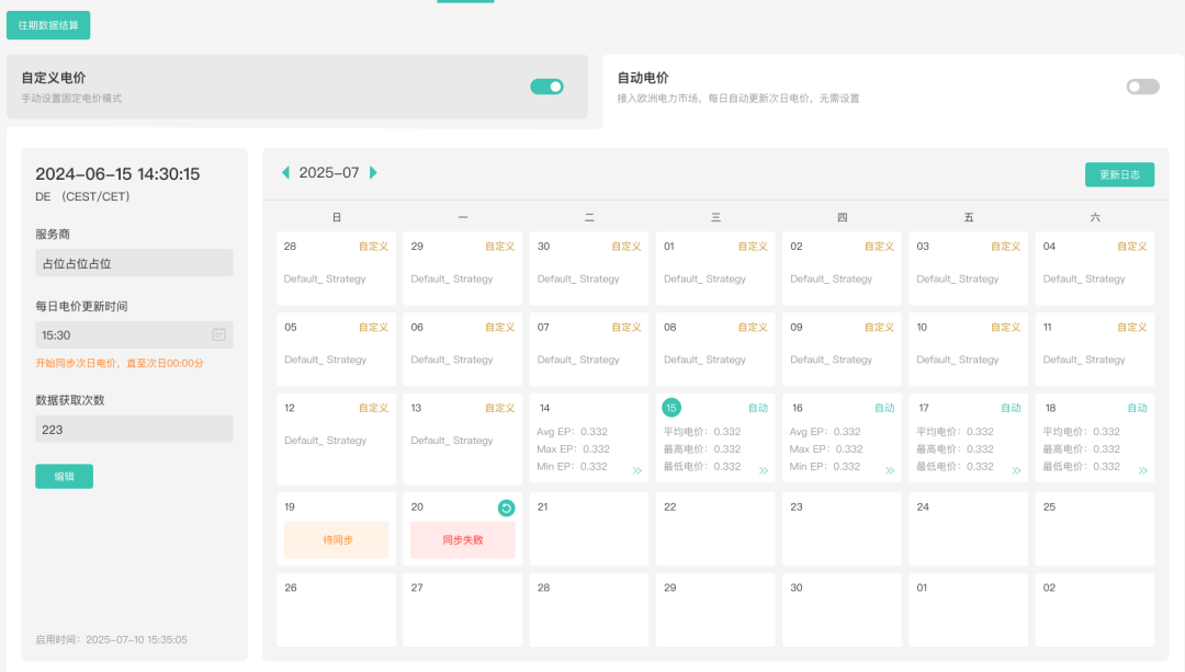 可一鍵選擇適配電站區(qū)域的電價服務(wù)商,實現(xiàn)多國市場、多服務(wù)商靈活接入。