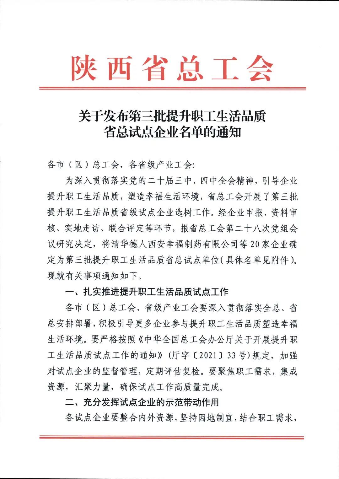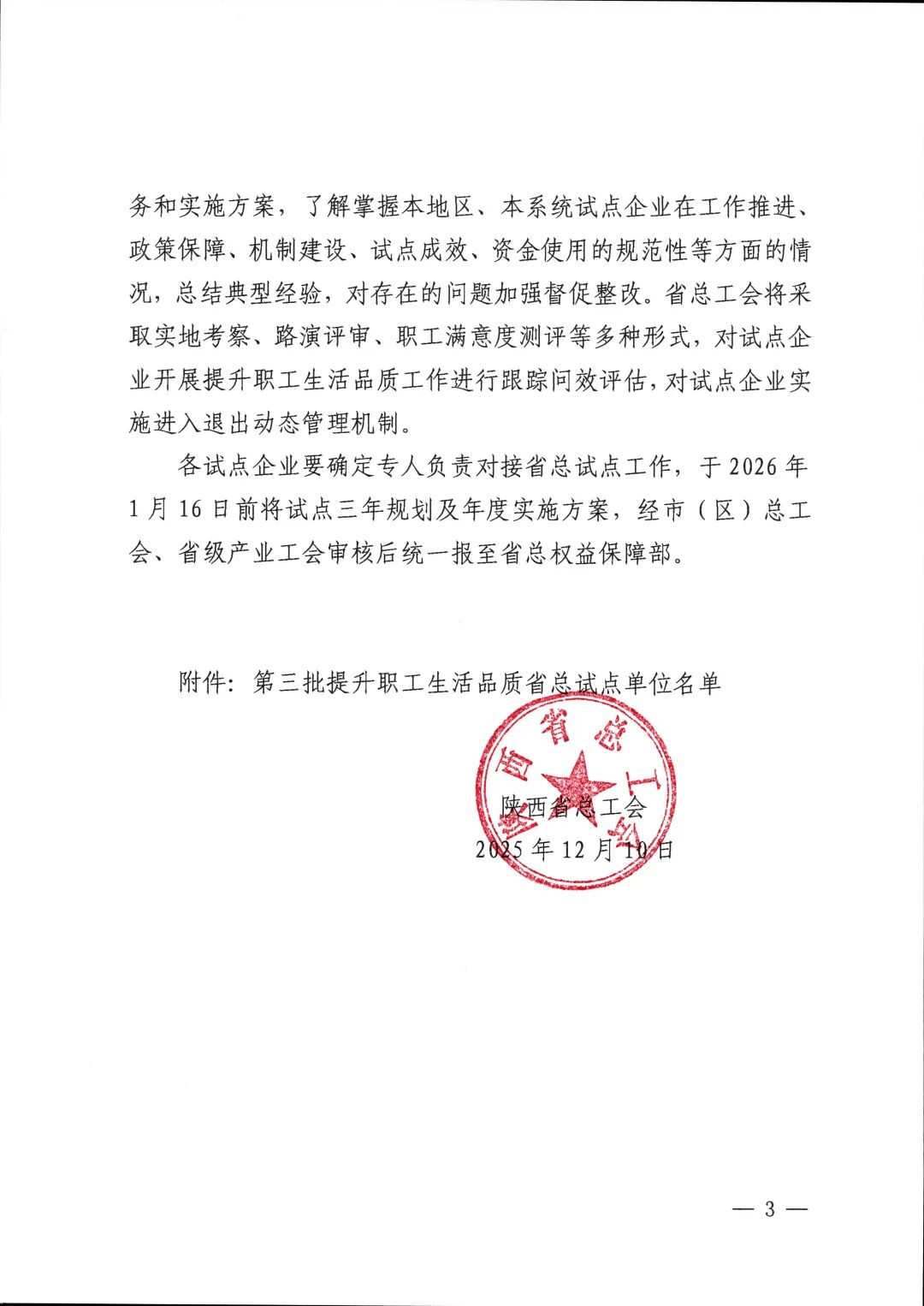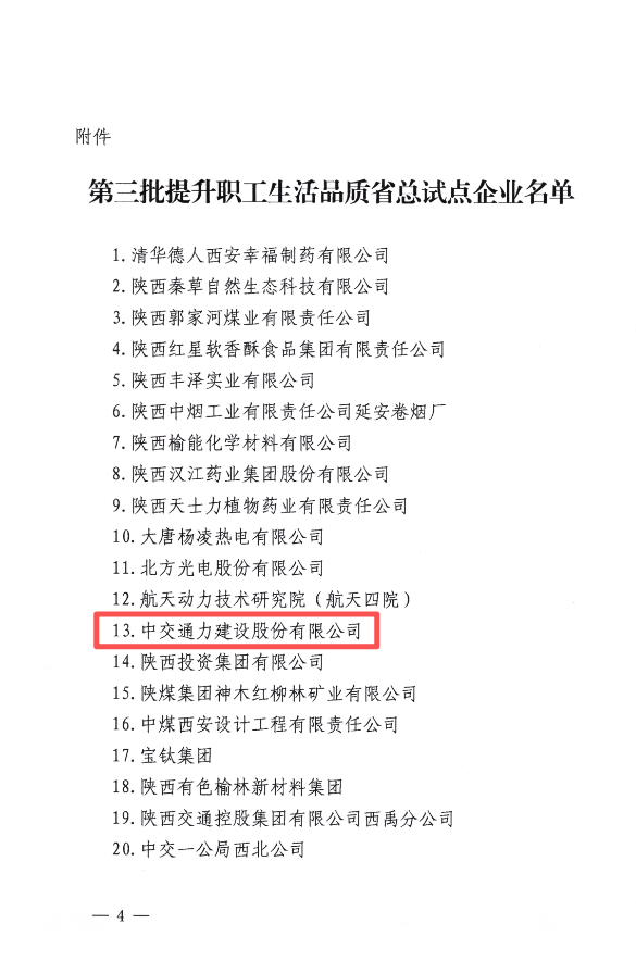 中交通力建設(shè)股份有限公司入選陜西省第三批提升職工生活品質(zhì)省級試點企業(yè)