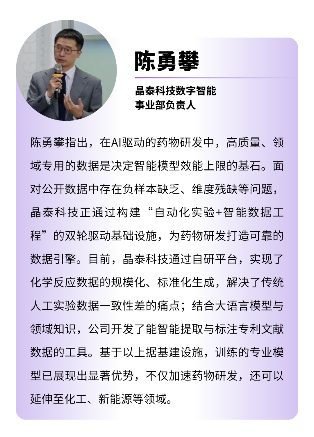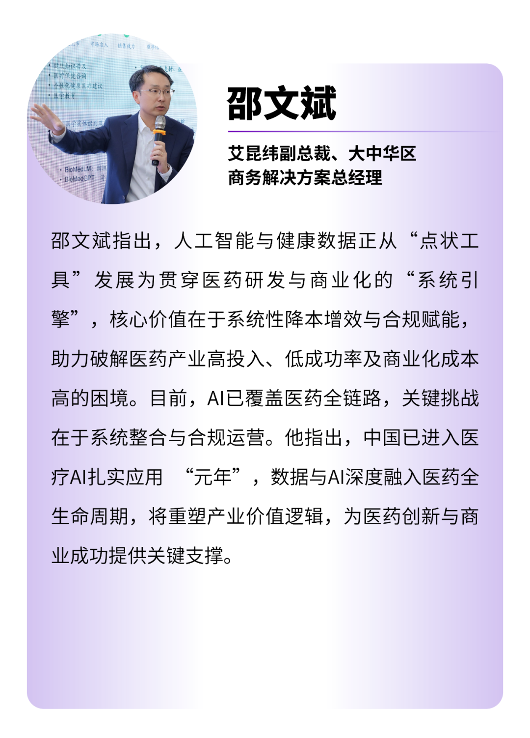 12月7日,首屆大灣區(qū)醫(yī)學(xué)人工智能大會暨2025金域醫(yī)學(xué)(603882)大數(shù)據(jù)與人工智能生態(tài)大會順利召開,在“醫(yī)療健康數(shù)據(jù)要素賦能大健康生態(tài):鏈接醫(yī)藥創(chuàng)新”論壇上,金域醫(yī)學(xué)分享了自身通過“數(shù)據(jù)+AI”融合,已在藥物、設(shè)備研發(fā),傳染病監(jiān)測和保險公司模型預(yù)測等三大場景實現(xiàn)落地。