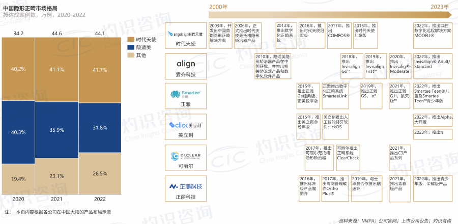 從行業(yè)格局看,灼識咨詢數(shù)據(jù)顯示,按2022年中國隱形正畸達成案例數(shù),美國愛齊科技(隱適美)與港股上市的時代天使(HK6699)合計占據(jù)超70%份額。正雅齒科緊隨其后,位居行業(yè)前列。