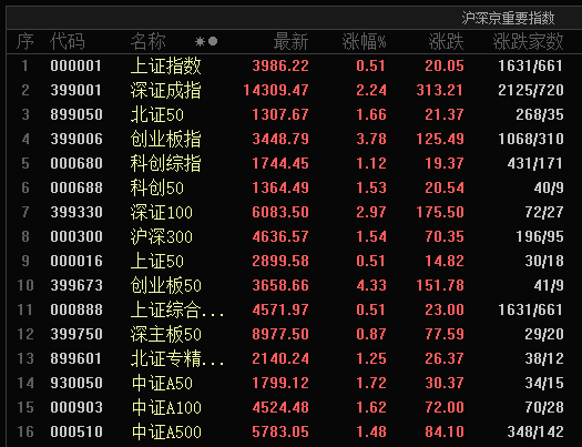 01. 又見大漲!主要指數(shù)全線收紅