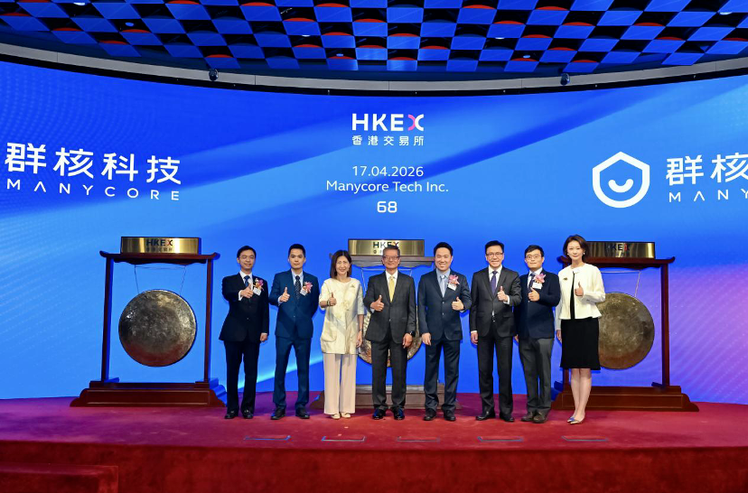 4月17日,“杭州六小龍第一股”MANYCORE TECH(下稱“群核科技(HK0068)”)正式以“0068”為股票代碼在港交所主板掛牌上市,開盤漲171.65%,報(bào)20.7港元/股,總市值352億港元。隨后公司股價(jià)走高,盤中一度漲186.88%,最高報(bào)21.86港元/股。截至發(fā)稿,群核科技(HK0068)漲123.10%,報(bào)17.00港元/股,總市值289億港元。