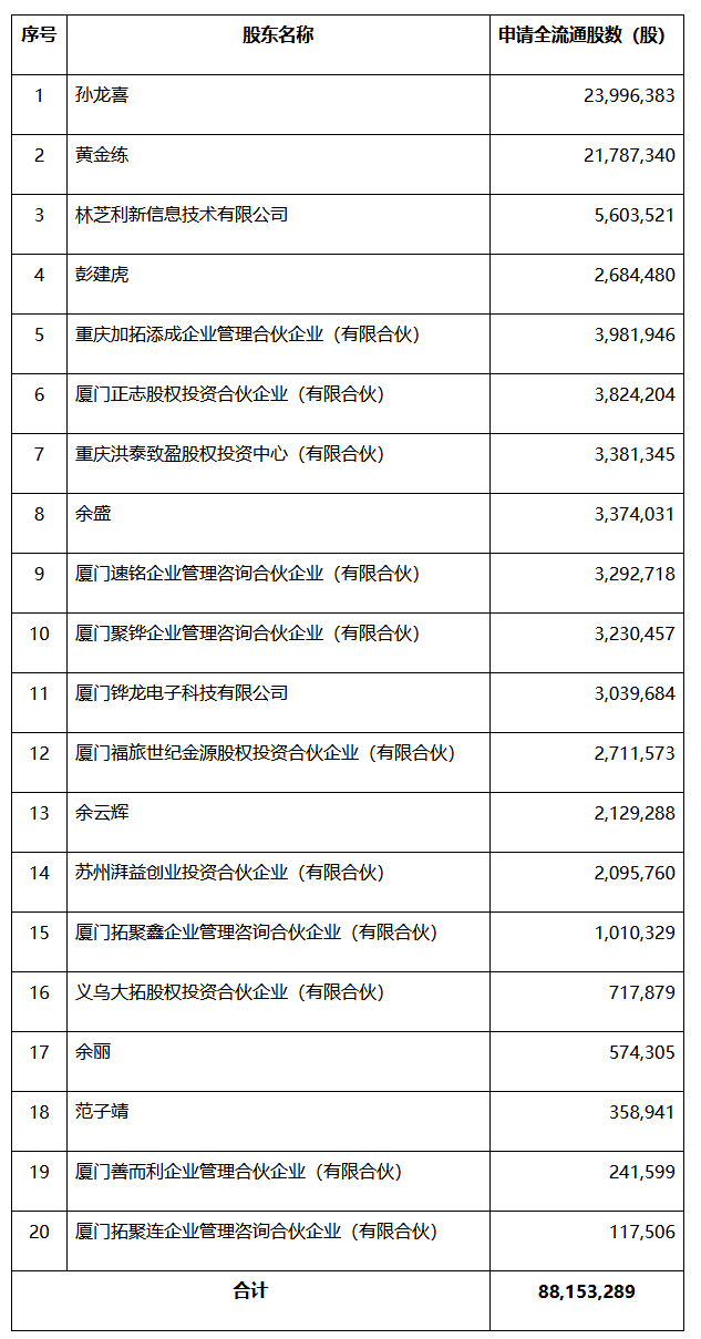 4月17日,中國證監(jiān)會(huì)國際合作司發(fā)布《關(guān)于廈門科拓通訊技術(shù)股份有限公司境外發(fā)行上市及境內(nèi)未上市股份“全流通”備案通知書》??仆毓煞輸M發(fā)行不超過11,629,100股境外上市普通股并在香港聯(lián)合交易所上市。公司20名股東擬將所持合計(jì)88,153,289股境內(nèi)未上市股份轉(zhuǎn)為境外上市股份,并在香港聯(lián)合交易所上市流通。