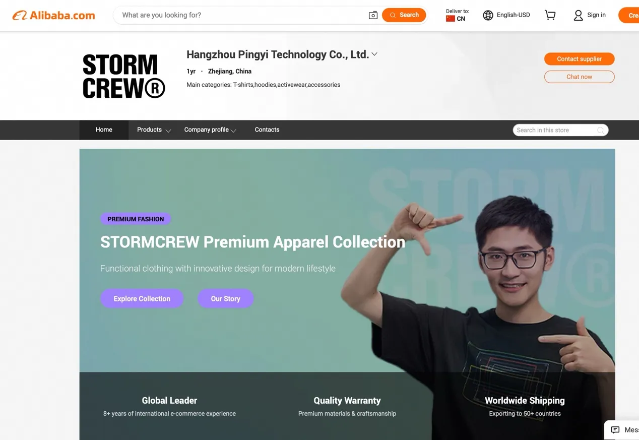 據(jù)介紹,影視颶風團隊使用了阿里國際站平臺上的多個AI Agent,把商品信息一鍵翻譯、生成適配海外市場的多語言產品介紹和視頻,快速把海外店鋪開起來。其店鋪里的主營商品為T恤、連帽衫、運動服、配飾,與國內電商售賣的一致。