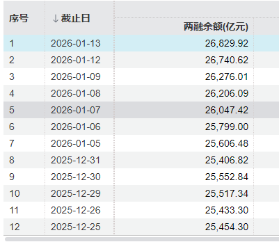 數(shù)據(jù)顯示,截至2026年1月13日,A股兩融余額約為26830億元,年內(nèi)累計(jì)增長(zhǎng)超過(guò)1400億元,進(jìn)一步創(chuàng)出歷史新高。從資金流向來(lái)看,半導(dǎo)體、硬件設(shè)備、有色金屬等板塊成為今年年初融資流入的主要方向。