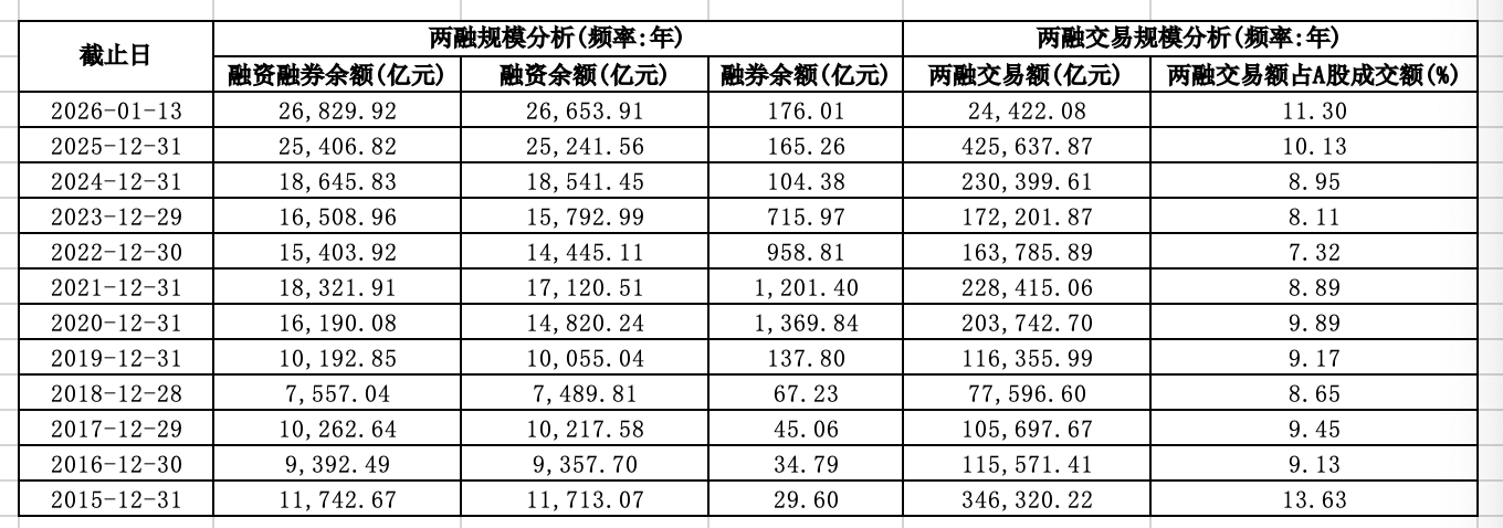 杠桿資金加速進(jìn)場(chǎng),成為市場(chǎng)增量資金的重要支撐。截至2025年末,全市場(chǎng)融資余額從2024年末的1.85萬(wàn)億元大幅攀升至2.52萬(wàn)億元,增幅超30%;進(jìn)入2026年首周,融資凈流入規(guī)模亦突破800億元。